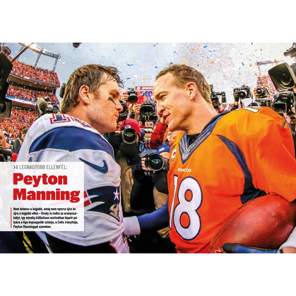 Nem kétséges, Tom Brady minden idők egyik legnagyobb amerikaifutball-játékosa (G.O.A.T - Greatest of All Time). A New England Patriots legendás irányítója 2020. márciusában hagyta el imádott csapatát a Tampa Bay Buccaneers miatt, 2022. januárjában pedig bejelentette visszavonulását. Nevéhez számtalan utánozhatatlan pillanat, mérkőzés, rekord és hét Super Bowl-győzelem fűződik.